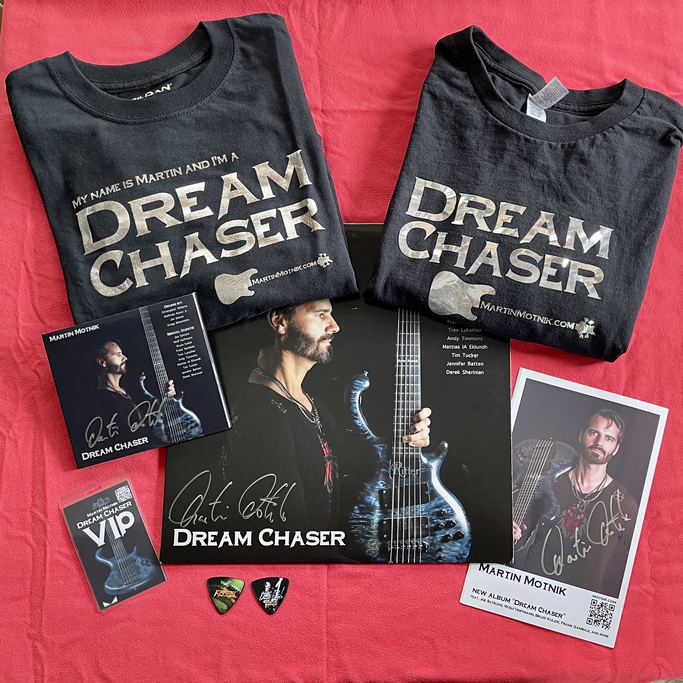 The album is available on CD and now also on vinyl. I'm currently also offering a special package which was previously reserved for my crowdfunding supporters: get your own personalized t-shirt with your name and tell the world you're a Dream Chaser too!